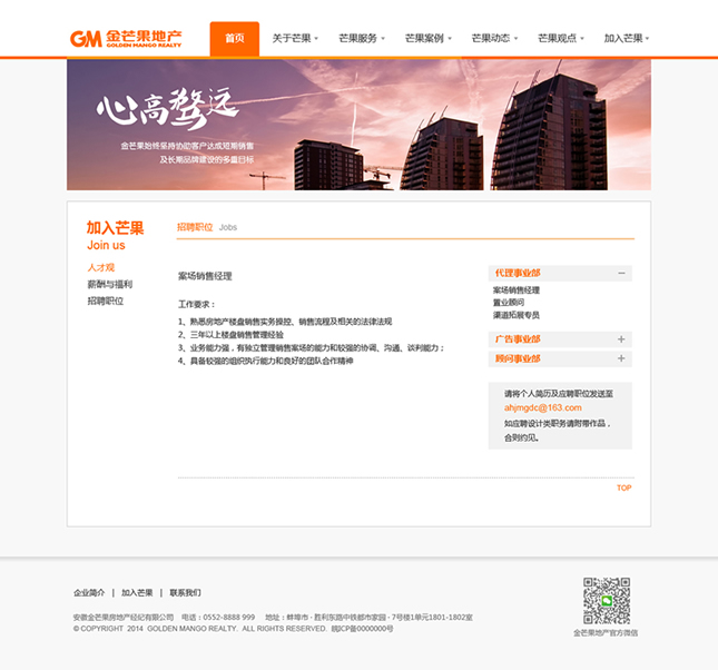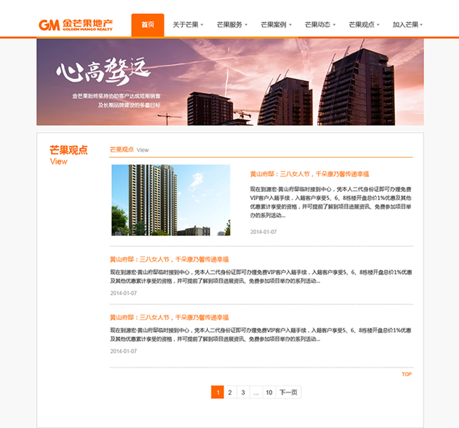 金芒果基于對(duì)中國房地產(chǎn)的執(zhí)著追求,憑借對(duì)市場(chǎng)營銷的激情創(chuàng)新,以完全經(jīng)過市場(chǎng)檢驗(yàn)的專家團(tuán)隊(duì)和對(duì)市場(chǎng)的敏銳天賦,大膽構(gòu)思、執(zhí)著實(shí)踐、激情專注、科學(xué)分析,贏得了業(yè)主的廣泛認(rèn)同和支持,并以優(yōu)異業(yè)績和服務(wù)質(zhì)量,被客戶譽(yù)為具實(shí)效、富激情、科學(xué)嚴(yán)謹(jǐn)?shù)膶I(yè)房地產(chǎn)服務(wù)商。