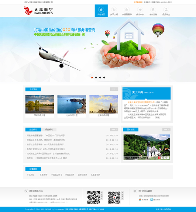 大禹航空主要從事中國民航業(yè)技術(shù)研發(fā)及運用,立足中國區(qū)域,利用云計算技術(shù)緊密結(jié)合民航業(yè)、旅游業(yè)、酒店業(yè)的商務著眼點,以航空服務及入侵航空銷售與政策渠道,通過核心人力專業(yè)合作且互補資源,建立了具有O2O運營模式的一站式航旅服務智能化平臺(DayuAir.com),并配套了專業(yè)的“中國民航呼叫中心創(chuàng)新基地”和“空鐵聯(lián)運服務中心”為平臺提供線上線下的支持與保障。